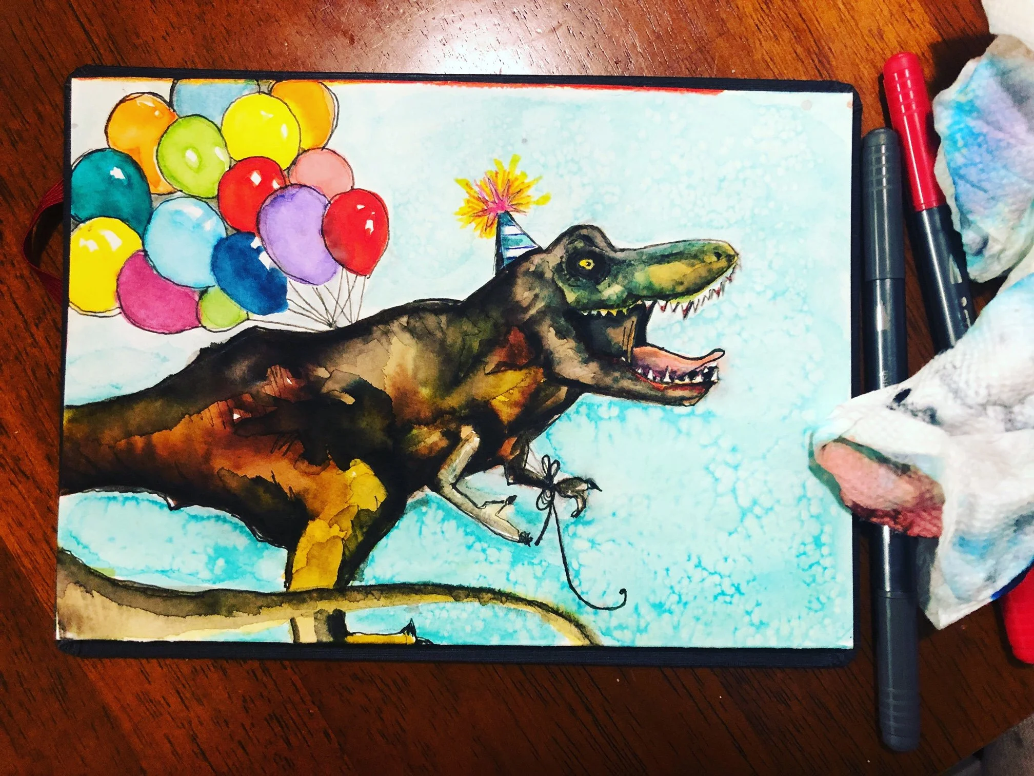 "Party Hat." Watercolor Marker on Paper, 7" x 10" (unavailable, gifted)